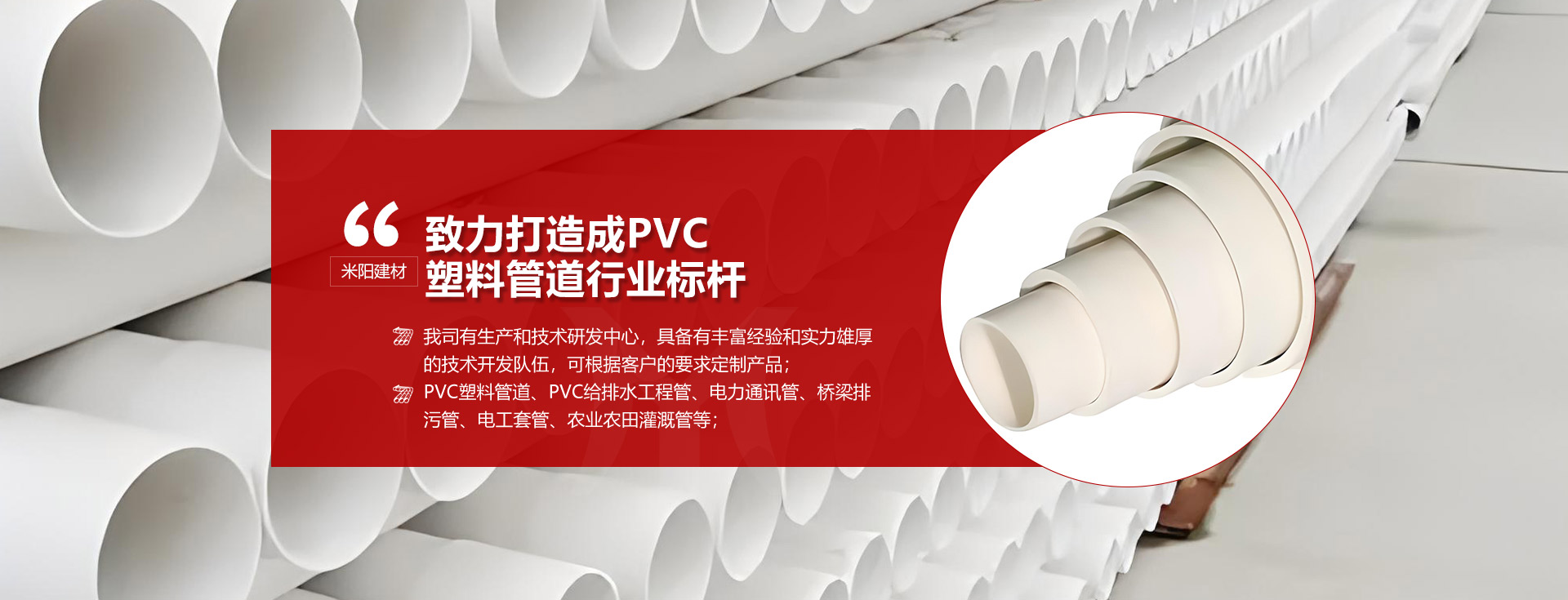 主營產品包含橋梁排水排污管,電子通信PVC管材管道,電工套管,農業(yè)排污管等;